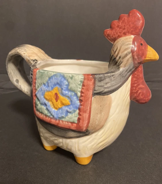 Vintage Farmhouse Kitchen Planter Pot Large Hand Painted Ceramic Hen Chicken
